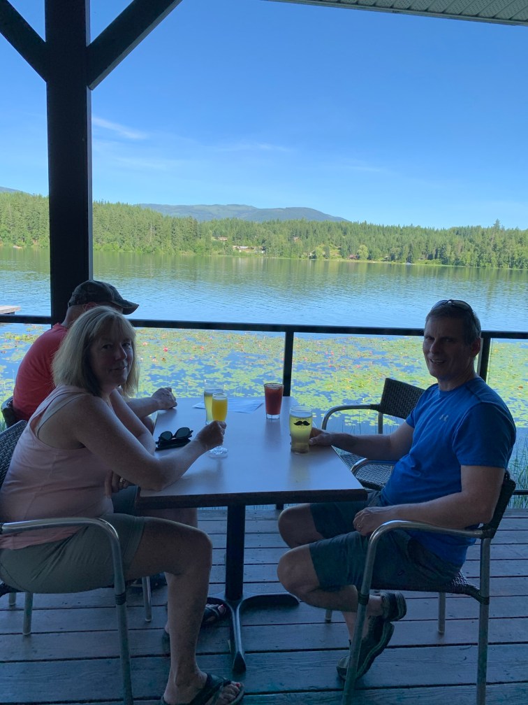 We had a relaxing vacation, with lots of time spent around the campfire, playing games and of course, eating and enjoying our wine (ladies) and beer (men). One night dined out at the Painted Turtle restaurant (located right in the campground) where we had a lovely dinner with a view of the lake. With everything right there, there didn’t seem to be much reason to leave the campsite, but we thought we should try to see some of the local sights. We had wanted to go and see Helmcken Falls and were disappointed we didn’t fit it in – the falls are supposed to be spectacular!