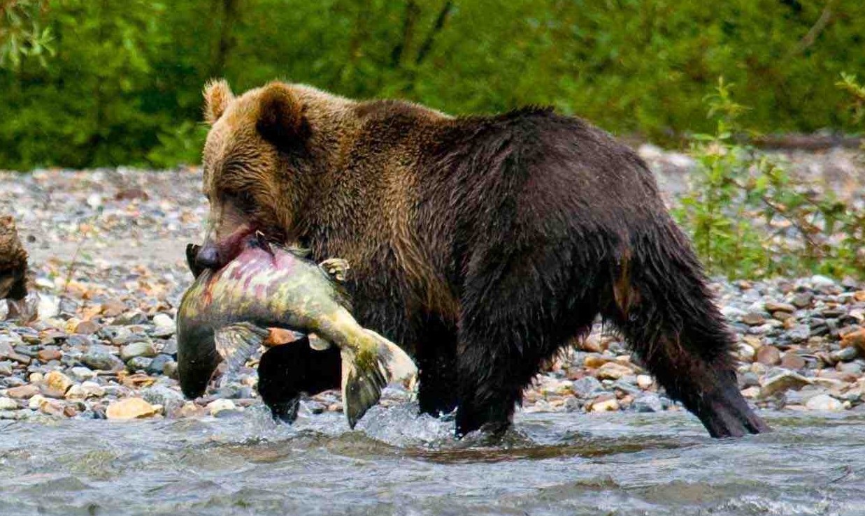 - If approached by a bear, reel in, and leave the area. Cut your line if playing a fish.