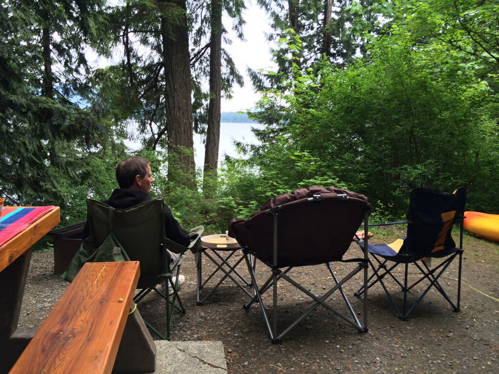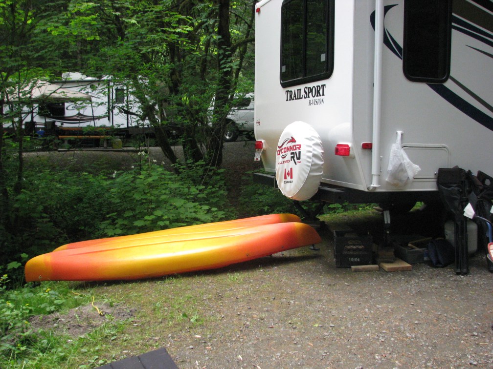 This trip was at Cultus Lake Provincial Park’s Delta Grove Campground. We have reviewed Cultus before and after spending the long weekend I thought I would share an update. This time we stayed in site D15 which is lake front. The view was amazing and we had access to the lake. This site was small and a bit sloped so it was hard to level the trailer (hence the jack story at above), difficult to place a tent for the kids, and a bit hard to get chair around the fire, but the view and location made up for it.