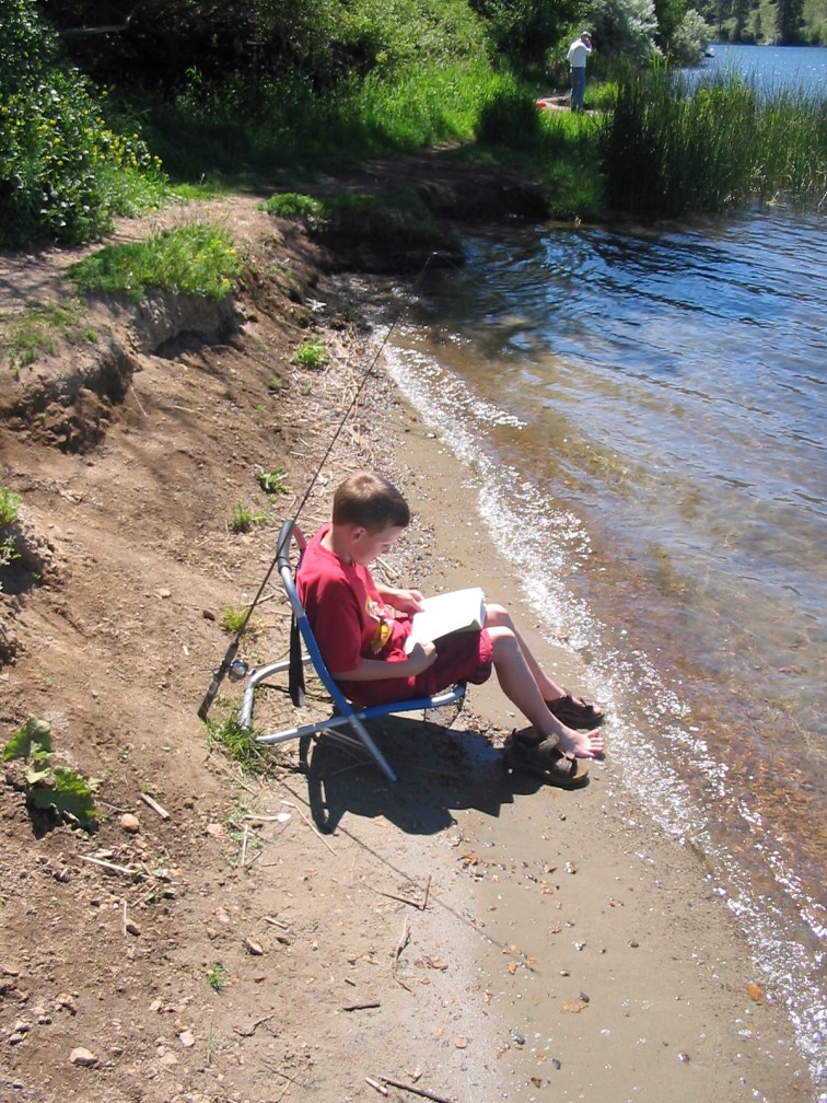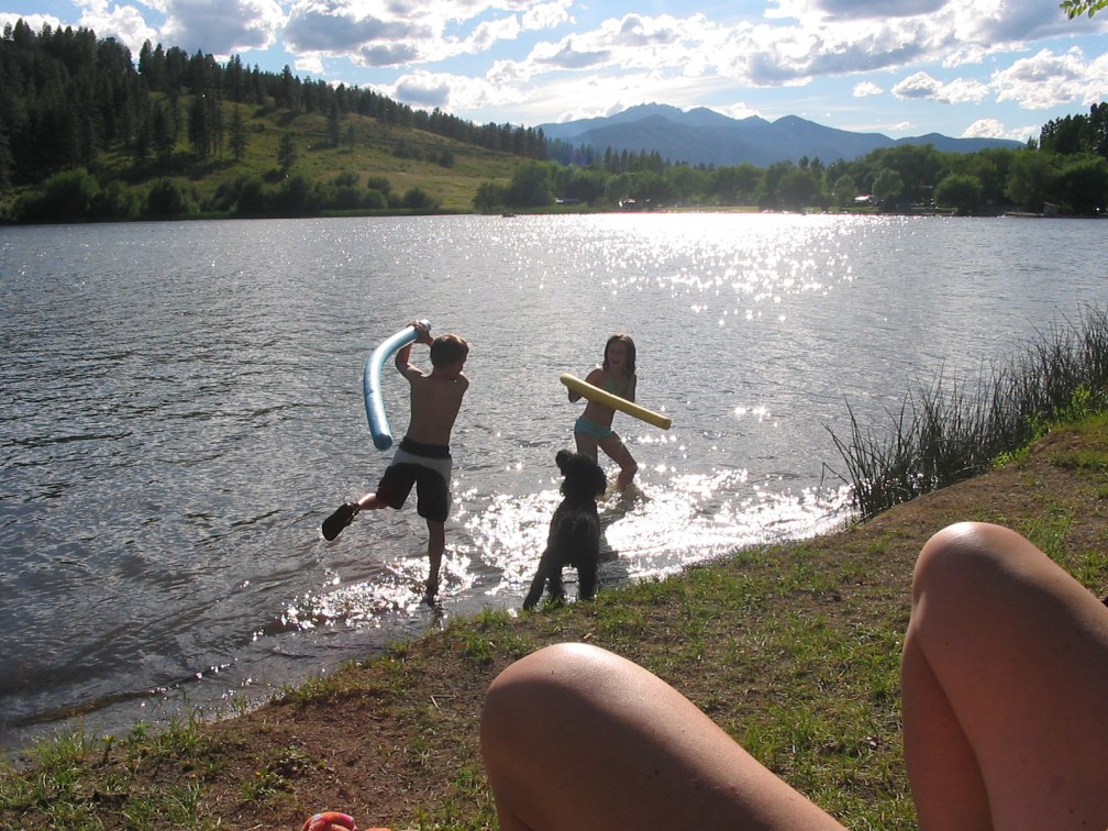 Back at camp we fished, relaxed and played in the lake. One afternoon after hanging out quietly at the side of the river, we returned to find our dog lying in the middle of the road! She managed to break open the trailer door in an effort to find us. It was shortly after that when we decided to get our 2nd dog to keep her company. (That plus a couple of unsuccessful dog-sitting episodes when we took trips without her: once she used her snout to ‘King Kong” open her steel kennel bars!)