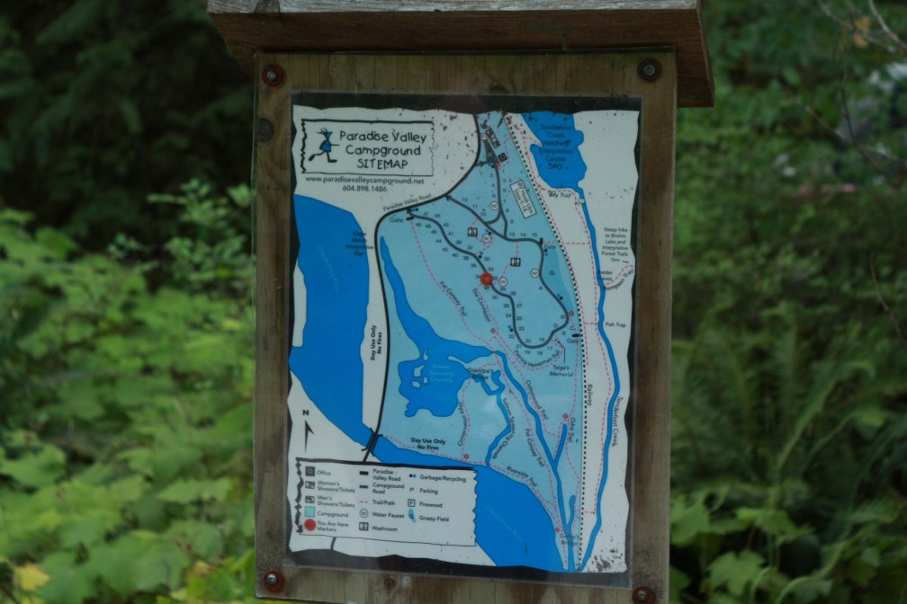 Paradise Valley Campground in Squamish BC was the last stop on our July 2015 Sea-to-Sky Tour, without kids or dogs. Our first night was at Nairn Falls in Pemberton, from there we headed to Whistler for 3 nights at Riverside Resort and Campground with our last 2 nights at Paradise Valley Campground. When we were planning to camp in Squamish we immediately looked into Alice Lake Provincial Park but not surprisingly, it was booked solid. After a few internet searches we found Paradise Valley. We had not heard of this campground but we needed 3 sites and they had 3 left so it was a perfect match. Having to take the last 3 available sites put our expectations at a low level; from their map it appeared our sites were right off the main road near the office so we were anticipating a noisy night.