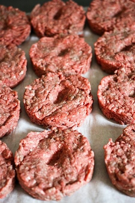 Once I have all my 2 oz burgers made, I then place about a tablespoon of shredded cheese in the center of half of them and then top them with a second burger. Pinch the edges together to seal and freeze for future use.