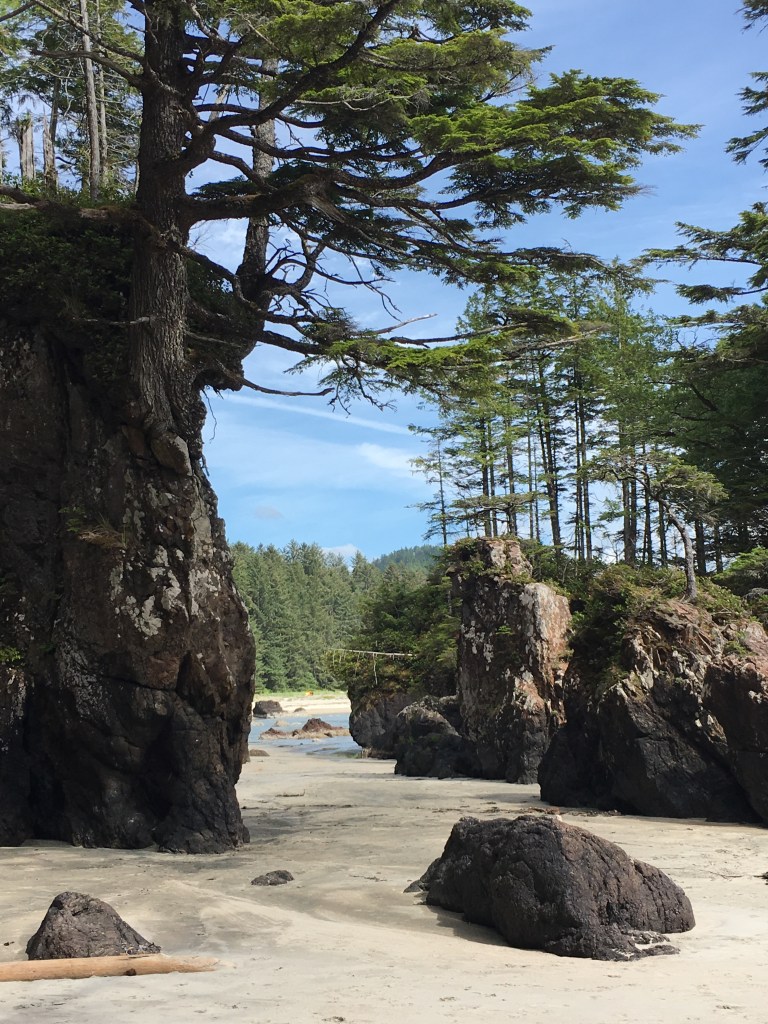 Day 5: Blessed with sunshine once again we headed for Cape Scott Provincial Park. This was a 2 hour drive on a bumpy logging road. We took this trip on a weekend so there were not logging trucks, which made the drive much easier. Once we arrived at the parking lot it was an easy 40 minute hike to San Joseph Beach. Wow, was this hike worth it. We arrived at a beautiful sandy beach famous for its stone haystack formations and endless sand. We loved it and wished that we were adventurous enough to walk in and camp at these amazing locations.