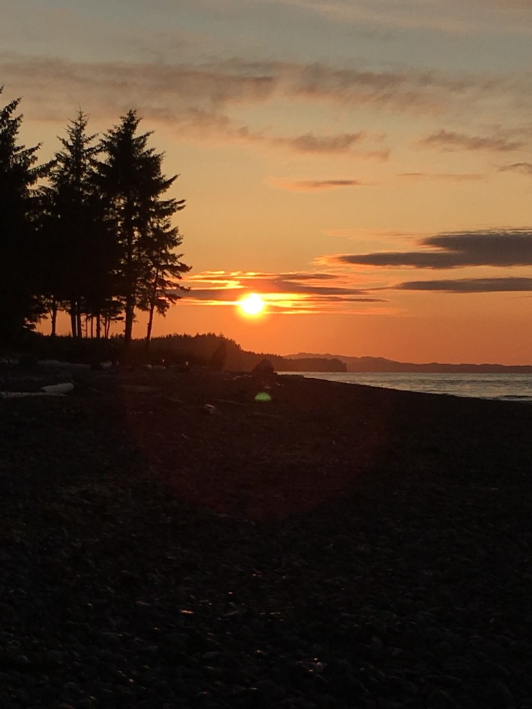 We stayed in site 51, it was one of the oceanfront sites and offered amazing views of the Strait. From our campsite we could see all kinds of wildlife: whales, otters and seals swam by; eagle, blue heron and hawks flew overhead; and fish were jumping everywhere. It was our evening entertainment to sit on the beach and watch as the anglers tried to catch a fish while the cruise ships crossed, various wildlife visited, and the sun set in amazing colors. That alone made this campground worth the stop.