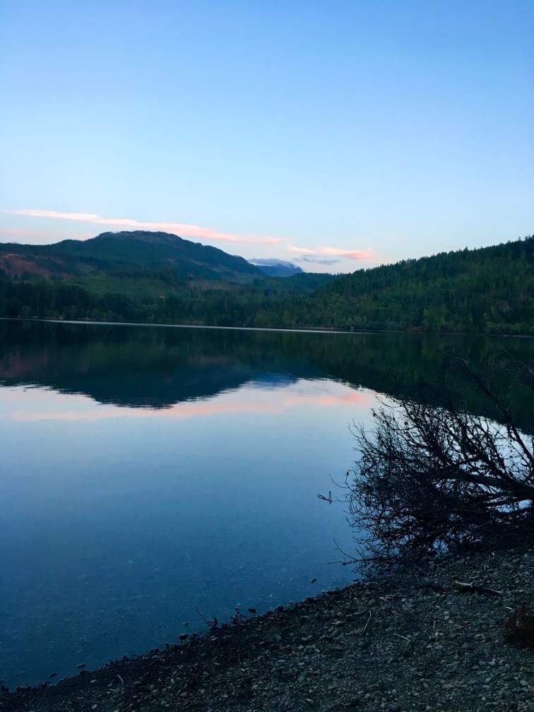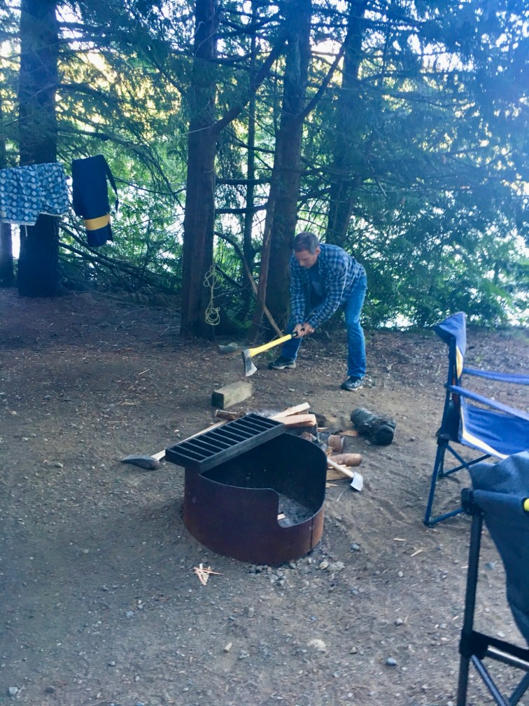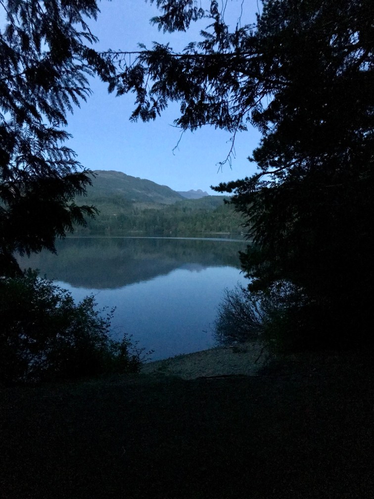 After our bumpy trip from Loveland Bay, we stopped in Campbell River for supplies and then headed off to Horne Lake. We made a stop in Cumberland for gas and found this great local Brewery for lunch, Cumberland Brewing Company. They had great tasting dishes and we both enjoyed the local pint. We were then off to Horn Lake which was accessed by yet another gravel road. We arrived around 4:00 pm, set up camp and shortly after, some of our family stopped by for a late afternoon visit. It is so special when you can tie in a family visit with a great vacation. We finished the night with a fire and a relaxing view of the lake.