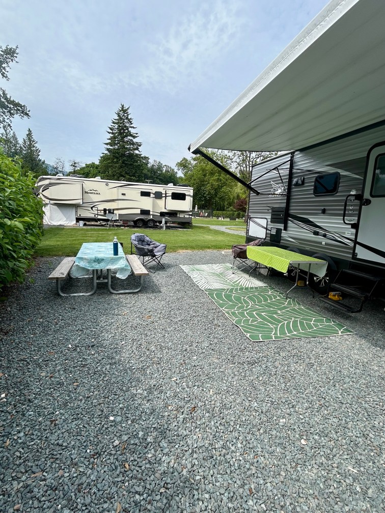 We were invited by Pathfinder Agassi to stay at their camping resort so we jumped at the opportunity. We wanted to stay in the area: Harrison Hot Springs is nearby, along with Sandpiper golf course, two places on our list to visit.