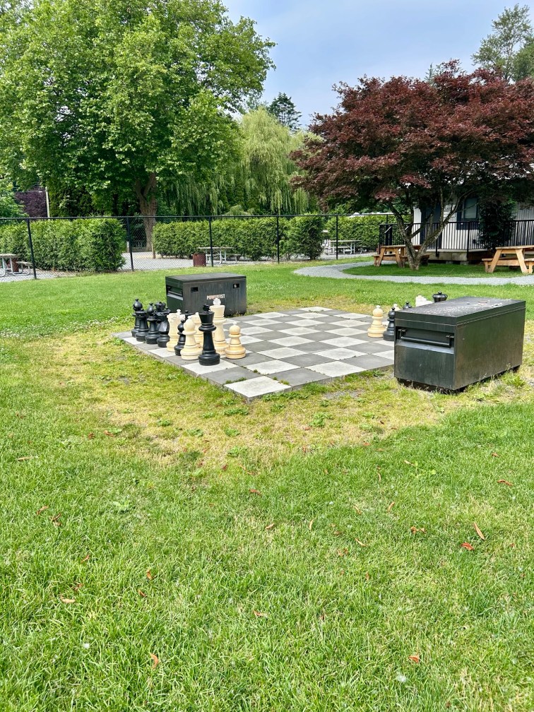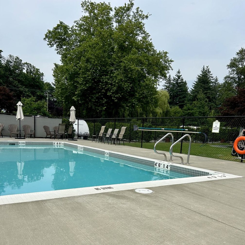 This campground is pet and family friendly. It has a playground, greenspace and pool along with a small off-leash dog park for your furry family members.