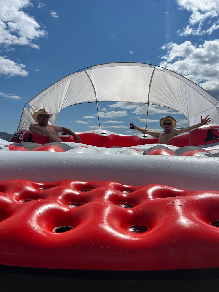 On the topic of shade, our friends bought the floating island from Costco with the sunshade. This addition is a huge upgrade. We could float as group for hours and avoid too much sun exposure. The trick here is to anchor it on two side to position the cover for optimal shade.