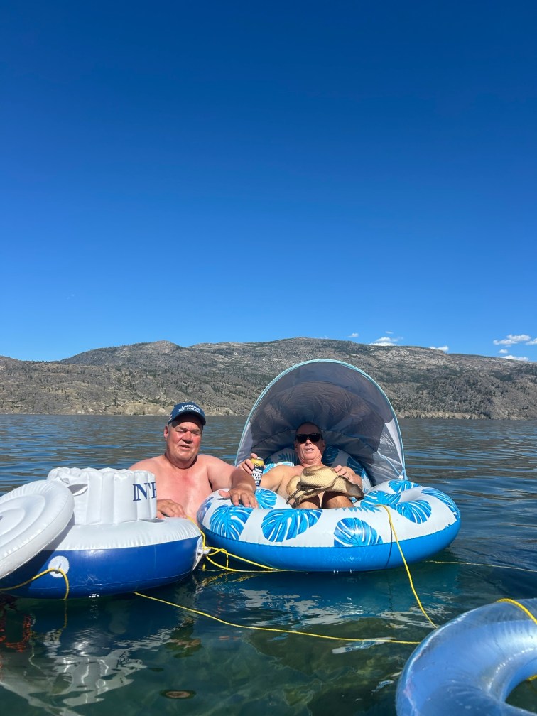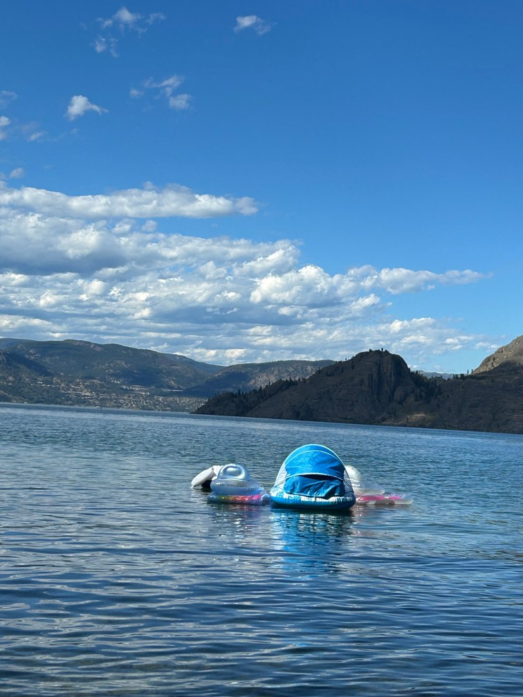 As you can see from many of my campground post, we love to float! Each summer we head to the Okanagan to enjoy the hot weather and float in their beautiful lakes. Blair is more sun sensitive than I am and even with 60 sunscreen he needs to head to the shade on shore in order to escape a sunburn.